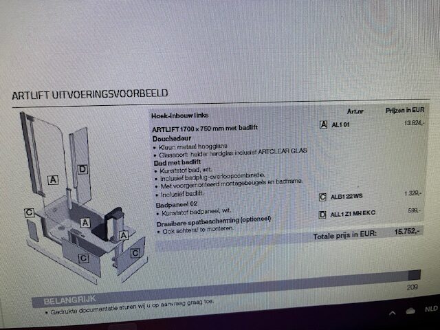 In zeer goede en mooie staat zijnde instapbad met liftsysteem van het Oostenrijkse merk Artweger. Het bad heeft de volgende afmetingen 180 x 80 cm.